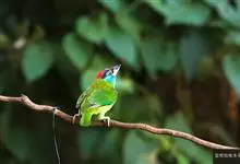 蓝喉拟啄木鸟,是须鴷科、拟啄木鸟属的鸟类。蓝喉拟啄木鸟为小型鸟类,体长20-23厘米。前额至头顶鲜红色,其上有一宽阔的黑色横带,将此红色分为前后二块;头侧、颏、喉蓝色,下喉两侧各具一红色点斑。…全部>>