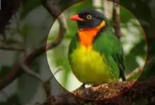 金喉拟啄木鸟,是须鴷科、拟啄木鸟属的鸟类。金喉拟啄木鸟为小型鸟类,体长19-24厘米。额深红色,头顶金黄色,后枕具一大块深红色斑,耳羽和头侧银灰色,上体草绿色,颏和上喉金黄色,下喉淡银灰色,…全部>>