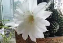 仙人球花 仙人掌科,仙人球属。植株单生或成丛。幼株球形,老株长成圆筒状,高可达75厘米,直径12-15厘米。球体暗绿色,具棱11-12。刺锥状,黑色,长1-1.5厘米。花着生于球体侧方,大型嗽喇叭状…全部>>