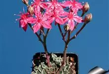 青星美人是景天科厚叶草属的多肉植物。开花时抽生出长长的花梗,簇状花序,红色花朵依次开放,呈倒钟形,串状排列;有短茎,排列为近莲座状;叶片肥厚,呈匙型且较细长,叶缘圆弧状,叶片光滑、有微量白粉,叶色翠绿,…全部>>