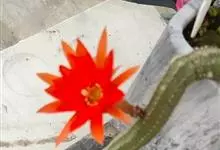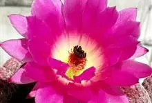 仙人球花 仙人掌科,仙人球属。植株单生或成丛。幼株球形,老株长成圆筒状,高可达75厘米,直径12-15厘米。球体暗绿色,具棱11-12。刺锥状,黑色,长1-1.5厘米。花着生于球体侧方,大型嗽喇叭状…全部>>