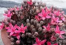 青星美人是景天科厚叶草属的多肉植物。开花时抽生出长长的花梗,簇状花序,红色花朵依次开放,呈倒钟形,串状排列;有短茎,排列为近莲座状;叶片肥厚,呈匙型且较细长,叶缘圆弧状,叶片光滑、有微量白粉,叶色翠绿,…全部>>