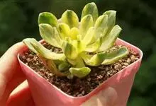 红缘莲花掌属蔷薇目、景天科植物,原产大西洋的加那利群岛。质厚,蓝绿色,被白霜,叶缘红褐色。聚伞花序,花浅黄色,有时带红晕。叶形叶色较美,有一定的观赏价值,多盆栽用于点缀室内;可放置于电视、电脑旁,…全部>>