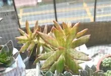 姬胧月是蔷薇目景天科植物。姬胧月株形和风车草属胧月极为相似。花瓣被蜡,叶排成延长的莲座状被白粉。平时为绿色,日照充足时叶色为朱红带褐色,叶呈瓜子型,叶末较尖,开黄色小花,…全部>>