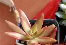 胧月 E.Walther)是景天科,风车草属多肉植物,常绿蔓生亚灌木,叶肥厚无柄,灰蓝色,阳光充足时呈粉红色,叶片枝顶簇生成莲座状,乳白色,花冠5裂,上有紫红色斑点,雄蕊两轮排列,花药鲜红色,…全部>>