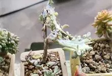 姬胧月是蔷薇目景天科植物。姬胧月株形和风车草属胧月极为相似。花瓣被蜡,叶排成延长的莲座状被白粉。平时为绿色,日照充足时叶色为朱红带褐色,叶呈瓜子型,叶末较尖,开黄色小花,…全部>>