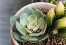 露娜莲是景天科拟石莲花属的多肉植物,由丽娜莲和静夜杂交而来。培育者为美国加利福尼亚州的育种师Dick Wright。灰绿色的叶片排列紧密,轮廓精致优雅,在阳光充足的环境下会呈现出优雅的藕荷色,…全部>>