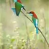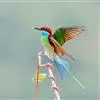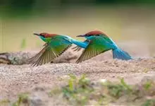 蓝颊蜂虎:是蜂虎科、蜂虎属的鸟类,共有2个亚种。体长27-33厘米,翼展46-49厘米,体重38-50克。嘴形细长而下弯,先端尖,…全部>>