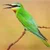 蓝喉蜂是蜂虎科蜂虎属鸟类。体长26-28厘米,嘴长而弯曲,有明显细长的中央尾羽。头部、颈部和背部为巧克力色,有黑色眼纹。喉部、腰部和尾羽为蓝色。腹部和两翼为绿色。幼鸟外观似成鸟,头部、颈部和背部为绿色,…全部>>