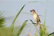 东方大苇莺是莺科苇莺属的一种动物,体长18-19厘米,体重22-29克。体型略大的褐色苇莺。具显著的皮黄色眉纹。上体呈橄榄褐色。下体乳黄色。第1枚初级飞羽长度不超过初级覆羽。虹膜褐色;上嘴褐色,…全部>>