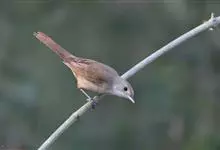 黑眉苇莺:体重7-11克,体长11-13厘米。上体橄榄棕褐色;眉纹淡黄色,杂有明显黑褐色纵纹;第2枚初级飞羽较第6枚短;下体白色,两胁暗棕色。虹膜暗褐色;嘴黑褐色,下嘴基淡褐色;脚暗褐色。…全部>>