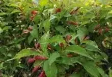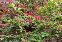 红王子锦带花是忍冬科锦带花属的落叶开张性灌木。株高1 -2米;嫩枝淡红色,老枝灰褐色;单叶对生,呈椭圆形,先端渐尖,叶缘有锯齿,红枝及叶脉具柔毛;花冠漏斗状钟形,花冠筒中部以下变细,聚伞花序,…全部>>