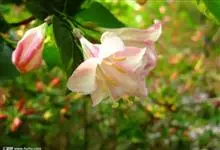 锦带花 A. DC.)是忍冬科锦带花属落叶灌木;树皮灰色;芽顶短尖,常光滑;叶矩圆形、椭圆形或卵状椭圆形,顶端渐尖,边缘有锯齿,脉上毛较密,具短柄或无柄;花单生或成聚伞花序生于侧生短枝的叶腋或枝顶,…全部>>