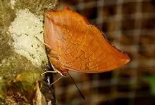 黄带枯叶蝶,蛱蝶科瑶蛱蝶属的一个物种。展翅宽60~70mm。雄虫翅膀表面底色黑褐色,中央具贯穿上下翅的橙黄色宽纵带;翅膀腹面底色灰褐色,纵带不明显,呈米白色。雌虫翅膀腹面不具米白色纵带。全部>>