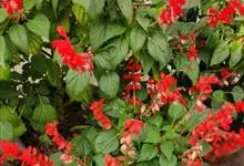 一串红,又称爆仗红、象牙红,为唇形科鼠尾草属植物。花序修长,色红鲜艳,花期又长,适应性强,为中国城市和园林中最普遍栽培的草本花卉。原产巴西、南美洲。喜温暖和阳光充足环境。不耐寒,耐半阴,忌霜雪和高温,…全部>>