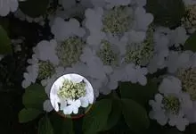 蝴蝶戏珠花 Miq.)是荚蒾科荚蒾属植物。落叶灌木,高达3米;当年小枝浅黄褐色。叶较狭,宽卵形或矩圆状卵形,有时椭圆状倒卵形。花序直径4-10厘米,外围有4-6朵白色、木型的不孕花。果实先红色后变黑色,…全部>>