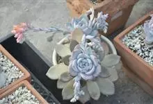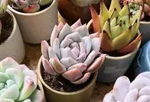 芙蓉雪莲是景天科拟石莲花属的植物。由于叶片表面覆盖着一层厚霜粉,通常呈现出白色;日照增多,温差增大后叶缘、叶尖会呈现出粉红色或橙红色。…全部>>