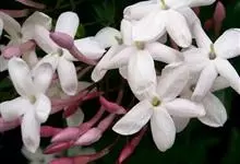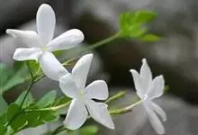 素馨花,木犀科素馨属多年生的攀援灌木植物。攀援灌木,小枝圆柱形,具棱或沟;叶对生,叶轴常具窄翼,小叶片卵形或长卵形;聚伞花序顶生或腋生,花序梗长,苞片线形,花萼无毛,裂片锥状线形,花冠白色,…全部>>
