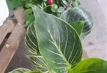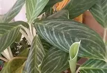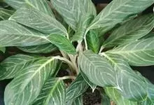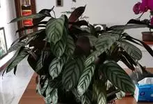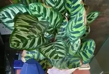 孔雀竹芋:竹芋科,肖竹芋属多年生常绿草本植物。植株挺拔株高可达60厘米。叶柄紫红色, 叶片薄革质,卵状椭圆形,叶面上有墨绿与白色或淡黄相间的羽状斑纹,就像孔雀尾羽毛上的图案,因而得名。…全部>>