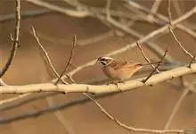 栗斑腹鹀:属小型鸣禽。体重19-25克,体长145-167毫米。头顶至背栗红色,眼先和颧纹黑褐色,黑色颧纹上还有一白纹,耳羽褐色或灰褐色,眉纹白色或灰白色。背、肩具黑色纵纹,腰至尾上覆羽砖红色无纵纹,…全部>>