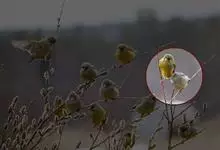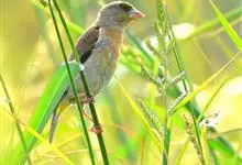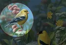 金翅雀:是雀形目雀科金翅雀属的小型鸟类。体长12-14厘米。嘴细直而尖,基部粗厚,头顶暗灰色。背栗褐色具暗色羽干纹,腰金黄色,尾下覆羽和尾基金黄色,翅上翅下都有一块大的金黄色块斑,…全部>>