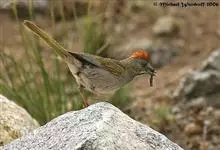 橙颊梅花雀体长约10厘米,头部灰色,两侧有大块橙色区域,嘴基及眼下方有黑纹,两条黑纹间呈白色,颊部有橙红色块斑,喙为红色至橙红色,背部及翼为褐色,腰为鲜红色,身体腹面淡灰色,腹部白色至皮黄色,…全部>>