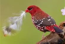 红梅花雀小型鸟类,体长9-10厘米。雄鸟通体朱红色,背、肩、胸等满布白色小斑点,两翅和尾黑褐色均具白色端斑,嘴红色,脚蜡黄色。雌鸟上体淡褐色或赭褐色,翅上中覆羽、大覆羽和内侧飞羽末端具白色斑点,…全部>>