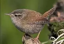 冬鹪鹩:是一种小型鸣禽,原产于北美的冬鹪鹩,传入旧大陆后简称鹪鹩。共有29个亚种,成鸟体长9-10厘米,翼展13-17 厘米,体重8-13克。通体褐或棕褐色,具众多的黑褐色细横斑。飞羽黑褐色,…全部>>