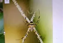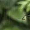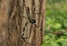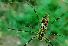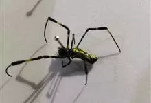 棒络新妇,是蜘蛛目肖蛸科络新妇属节肢动物。雄蛛体长约6毫米,背甲褐色,具黑色纵斑;步足黑色,有橙色环纹;腹部筒形、褐色,有黄斑;雌蛛体长约21毫米,背甲黑色,有大量银色长毛;触肢黄色,步足黑色,…全部>>