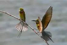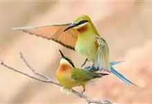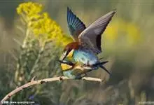 蓝颊蜂虎:是蜂虎科、蜂虎属的鸟类,共有2个亚种。体长27-33厘米,翼展46-49厘米,体重38-50克。嘴形细长而下弯,先端尖,…全部>>