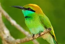 绿喉蜂虎是佛法僧目、蜂虎科的小型鸟类,共有9个亚种。身长22-25厘米,翼展29-30厘米,体重15-20克。喉绿色,额部、头顶至上背为锈红色,其余上体均为亮绿色。中央尾羽延长且端段狭细,…全部>>
