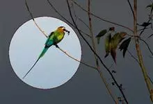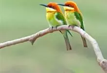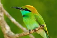 绿喉蜂虎是佛法僧目、蜂虎科的小型鸟类,共有9个亚种。身长22-25厘米,翼展29-30厘米,体重15-20克。喉绿色,额部、头顶至上背为锈红色,其余上体均为亮绿色。中央尾羽延长且端段狭细,…全部>>