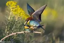 蓝颊蜂虎:是蜂虎科、蜂虎属的鸟类,共有2个亚种。体长27-33厘米,翼展46-49厘米,体重38-50克。嘴形细长而下弯,先端尖,…全部>>