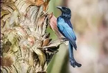 发冠卷尾是中型鸟类,体长28-35厘米。通体绒黑色缀蓝绿色金属光泽,额部具发丝状羽冠,外侧尾羽末端向上卷曲。栖息于海拔1500米以下的低山丘陵和山脚沟谷地带,多在常绿阔叶林、次生林或人工松林中活动。…全部>>