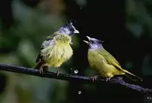凤头雀嘴鹎:属小型鸟类,体长18-22厘米。嘴粗短、呈象牙色或乳黄色,前额和脸灰色,头顶黑色,有一朝前竖立的黑色羽冠。上体橄榄绿色,下体黄绿色,尾羽黄绿色具宽阔的黑褐色端斑。…全部>>