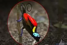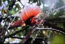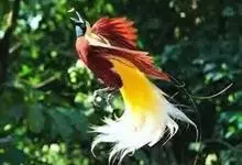 大极乐鸟是极乐鸟属中最大的鸟种。成年雄鸟体长可达到43厘米,雌性可达35厘米。雄鸟的额、颊、喉等墨绿色;头、颈黄色;上体暗赤栗色;腹部葡萄红色,胁部有长饰羽,其基部橙黄,中部黄色,…全部>>