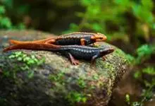 大凉疣螈雄性全长18.6~22㎝,雌性19.4~23㎝。头部扁平,头长略大于头宽,吻端平切而较高,近于方型。尾基部较宽,后段甚侧扁,尾背鳍褶薄,腹鳍褶厚,尾末端钝尖。体尾褐黑色或黑色,…全部>>