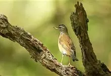 白眉歌鸫,是雀形目鸫科鸫属鸟类。体型略小并具有褐色斑点的歌鸫,上体橄榄褐色,眉纹白色,脸部斑驳,颏、喉至胸和下腹部以及两胁白色,密布有深褐色纵纹,尾下覆羽白色,两胁染锈红色,…全部>>