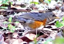 赤胸鸫是鸫科、鸫属中型鸟类,体长22-24厘米。整个头、颈和喉暗橄榄褐色或灰褐色,上体橄榄褐色。胸和两胁橙红色,腹以下白色。下嘴黄色,脚橙黄色具黄色眼圈。虹膜褐色,上嘴褐色,下嘴黄色,脚黄色。…全部>>
