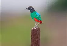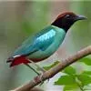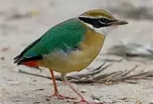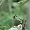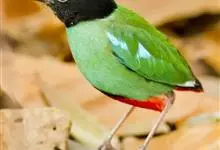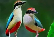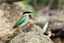 绿胸八色鸫:是雀形目八色鸫科的鸟类,共有12个亚种。体长为16-18厘米,体重65-69克。体型圆胖,尾短,腿长。头黑,上体绿色,两翼深色而具白色斑纹,头顶至后枕深褐,胸及腹部苹果绿,臀亮红。…全部>>