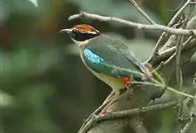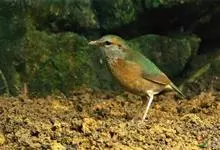 栗头八色鸫又叫锅巴雀,体长为24-26厘米,体重100-135克,是雀形目八色鸫科的鸟类。体型圆胖,尾短,腿长,常在森林底层或低植被中找食无脊椎动物。叫声简单哀婉。…全部>>