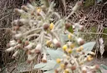 羊耳菊 Pruski & Anderberg)是菊科羊耳菊属的落叶灌木。根茎粗壮直立;分枝被污白色或浅褐色绳状或绵状密茸毛;单叶互生,叶片长圆形或长圆状披针形,边有小尖头细齿或浅齿,…全部>>