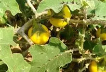 刺天茄,是茄科茄属的多年生草本植物。茎直立,枝条有刺;叶片大,互生,卵形或椭圆形,有长柄,叶面有短柔毛;花单生于枝顶,外面密被星状绒毛及细直刺,果被星状毛及直刺,浆果球形,光亮,…全部>>