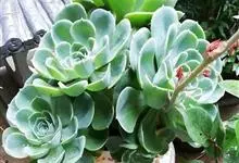 蓝石莲是景天科、拟石莲花属的多肉植物。茎部粗壮,成熟植株茎部木质化。叶片莲座型密集排列,株径不会很大,叶片相对较薄,常年绿色,表面布有白色粉末,中部凹陷,呈倒水滴状。叶尖较尖,叶缘光滑无褶皱,…全部>>