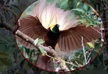 大极乐鸟是极乐鸟属中最大的鸟种。成年雄鸟体长可达到43厘米,雌性可达35厘米。雄鸟的额、颊、喉等墨绿色;头、颈黄色;上体暗赤栗色;腹部葡萄红色,胁部有长饰羽,其基部橙黄,中部黄色,…全部>>