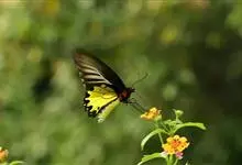 金裳凤蝶是凤蝶科、裳凤蝶属的动物。金裳凤蝶身体呈黑色,头、颈和胸侧有红毛,腹部有黑黄两色相间条纹,雄蝶前翅黑色,具黑天鹅绒光泽,各脉两侧灰白色,后翅金黄色,各室外缘有等腰三角形黑斑1枚,斑内侧有晕,…全部>>