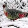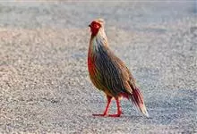 血雉雉科血雉属鸟类,别名血鸡、松花鸡,血雉的雄鸟大覆羽、尾下覆羽、尾上覆羽、脚、头侧、腊膜为红色,故称血雉。其别名甚多,各地皆异。在甘肃,因其胸侧和翅上覆羽沾绿,被称为“绿鸡”;因其羽毛形似柳叶,…全部>>