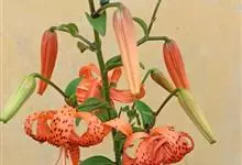 宫灯百合:仅一属一种。为多年生球根草本,由于其花形花色酷似中国宫灯而得名,多年生球根草本,半蔓性,高约1米。叶轮状互生,无柄,叶面光滑,柳叶形,长约5~10厘米,宽约2~3厘米,有3条深刻纹。 花坛…全部>>