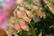 宫灯长寿花是景天科伽蓝菜属,也叫红提灯,蔓生吊钟海棠,为多年生草本植物,茎木质化,多分枝,新生分枝柔软常下垂,叶对生,长卵形,稍具肉质,花淡红色,管状,先端4瓣稍分开,其外形酷似小提灯故此得名宫灯长…全部>>