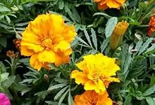 万寿菊是菊科万寿菊属一年生草本植物,别名孔雀菊、缎子花、臭菊花、西番菊、红黄草、小万寿菊、臭芙蓉、孔雀草。万寿菊茎近基部分枝。叶羽状分裂,长5-10厘米,宽4-8厘米,裂片长椭圆形或披针形,具锐齿,…全部>>